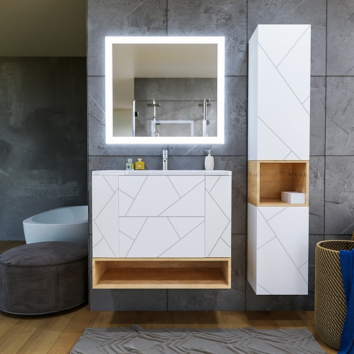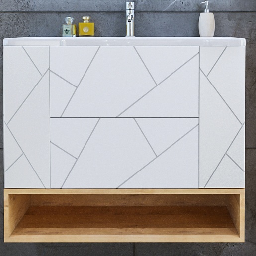 Тумба с раковиной Бриклаер Кристалл 90 с нишей белая/дуб бунратти - арт. 4627125415975 / 4660105230823.