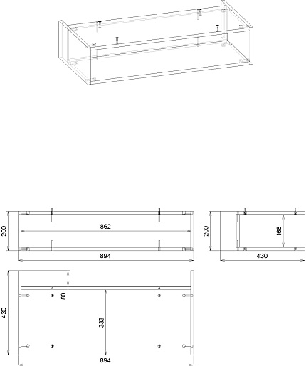 Комплектация: тумба под раковину, раковина, ниша под тумбу, крепления.