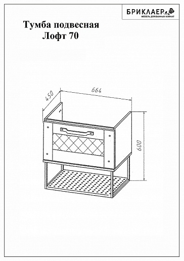 Бриклаер Тумба с раковиной Лофт 70 подвесная