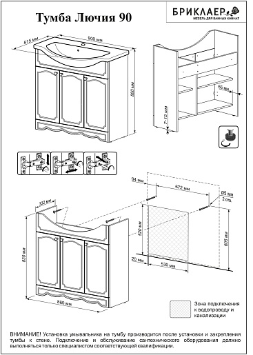 - тумба под раковину Бриклаер Лючия: распашная дверца - 3 шт., ручка - 3 шт.