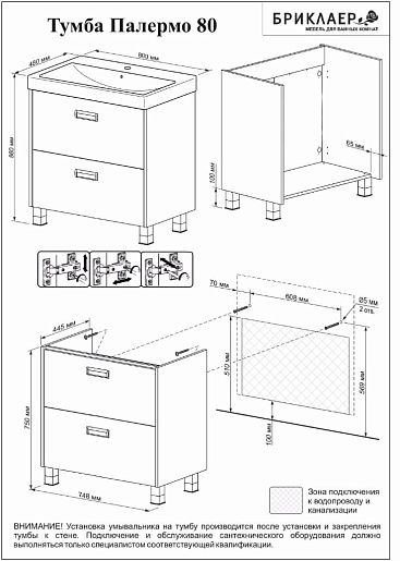 Бриклаер Тумба с раковиной Палермо 80