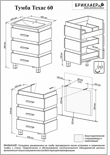 - тумба под раковину Бриклаер Техас 60: выдвижной ящик - 3 шт., ручка - 3 шт.