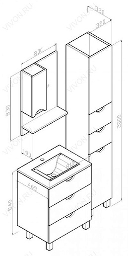 - тумба под раковину Бриклаер Токио 80: выдвижной ящик - 3 шт.
