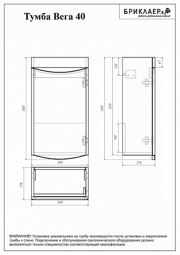 - Тумба Вега 40: отверстия в задней планке для крепления к стене