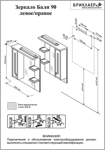 Бриклаер Зеркальный шкаф Бали 90 R светлая лиственница