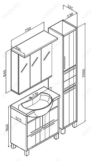 Размеры ШхГхВ: 750х306х840 мм