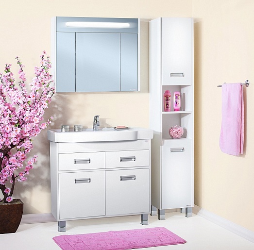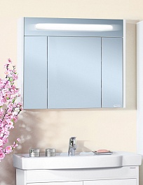 Описание: зеркальный шкаф для ванной с распашными дверцами и внутренней полкой. Встроенный люминисцентный светильник 6 Вт.