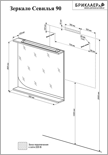 Бриклаер Зеркало для ванной Севилья 90 венге мали/песок