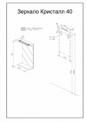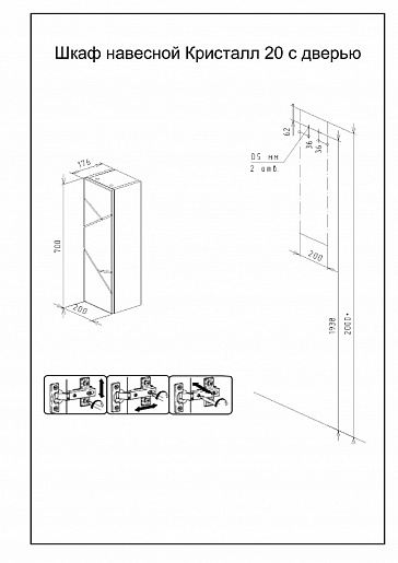 Бриклаер Зеркало-шкаф Кристалл 80 с двумя шкафчиками