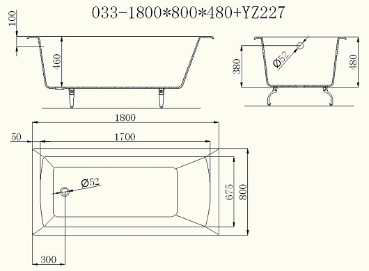 Чугунная ванна "Prime" 180x80x48: