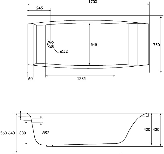 Акриловая ванна Cersanit Virgo 170x75 ультра белая - арт. WP-VIRGO*170-W.