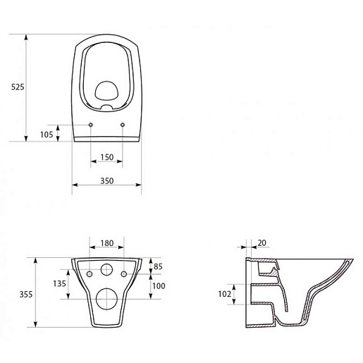 - Унитаз подвесной, безободковый Cersanit Carina new clean on