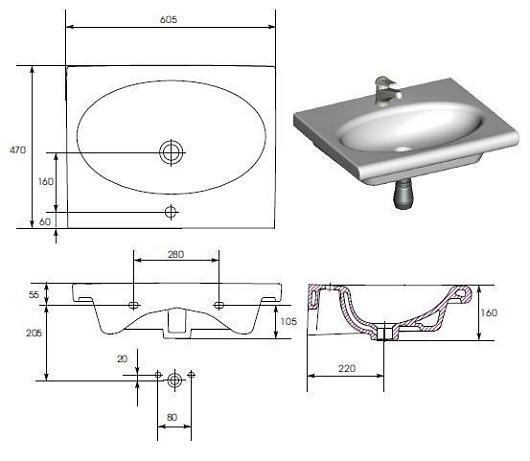 Cersanit Раковина Nature 60
