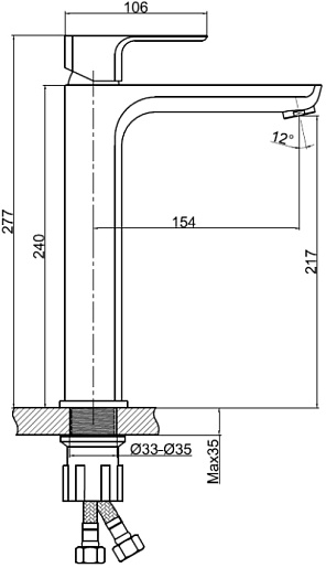 Комплектация: смеситель, комплект гибкой подводки, донный клапан.