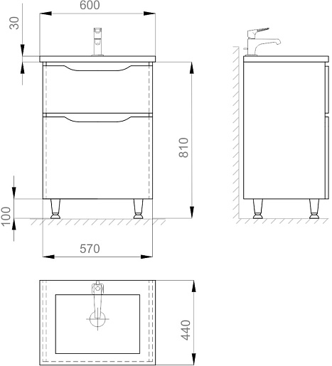 В комплекте: тумба, раковина, зеркало, ножка (4 шт.).
