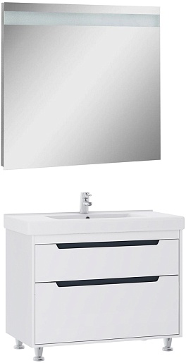 В комплекте: тумба, раковина, зеркало, ножка (4 шт.).