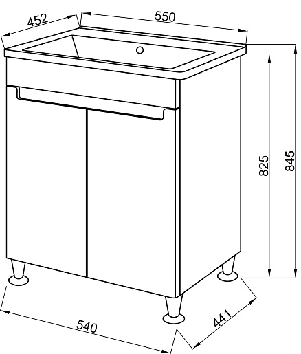 - Тумба Пьемонт 55, два распашных фасада, доводчики.