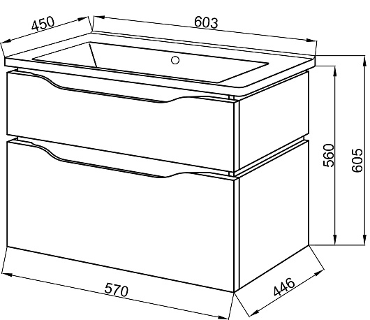 - Тумба Сицилия 60, два выдвижных фасада, доводчики.