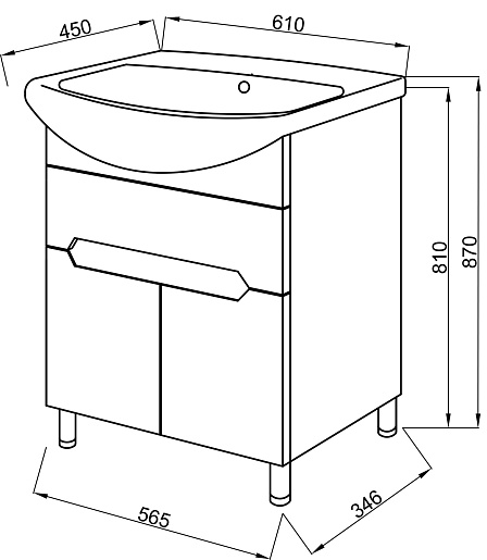 - Тумба Ломбардия 60, два распашных фасада, ящик, доводчики.