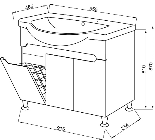 - Тумба Ломбардия 95, три распашных фасада, корзина для белья, доводчики.