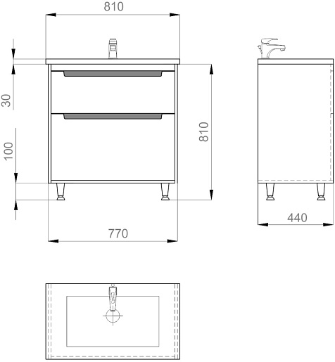 В комплекте: тумба, раковина, ножка (4 шт.).