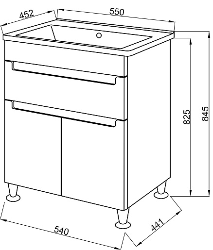 - Тумба Пьемонт 55, два распашных фасада, ящик, доводчики.