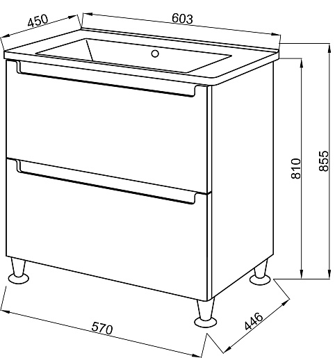 - Тумба Пьемонт 60, два выдвижных фасада, доводчики.