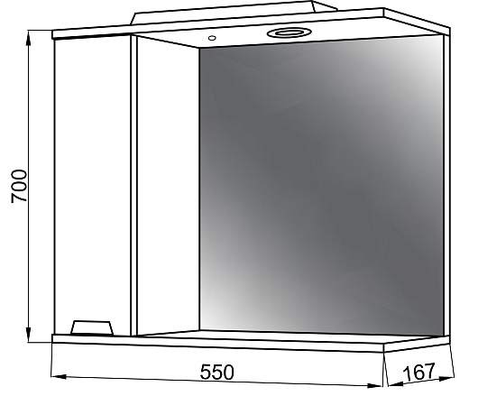 Описание: влагостойкое зеркальное полотно, шкафчик, вкладные полки.