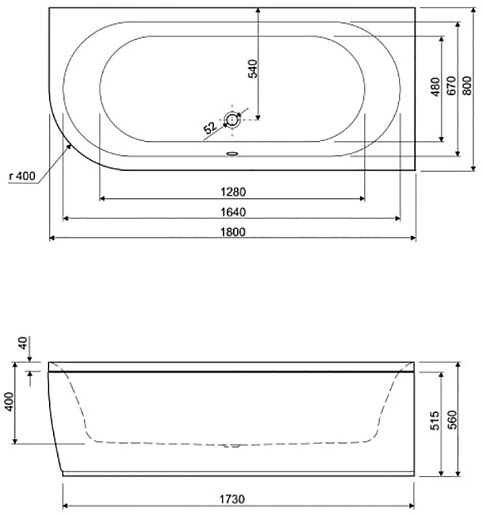 Акриловая ванна Metauro Corner 180x80 R - арт. METAURO CORNER-180-80-40-R.