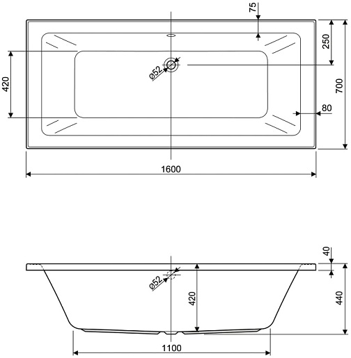 Акриловая ванна Plane Solo 170x70 - арт. PLANE SOLO-170-70-45.