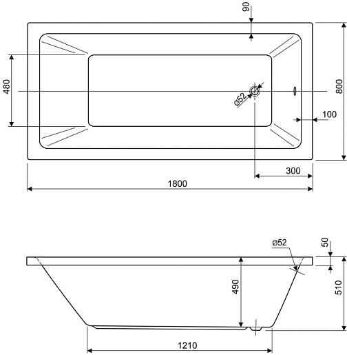 Акриловая ванна Plane Solo 180x80 - арт. PLANE SOLO-180-80-49.
