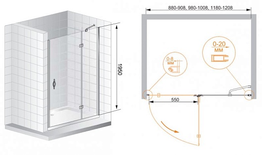 Cezares Душевая дверь в нишу BERGAMO-W-B-12-100-P-Cr-L