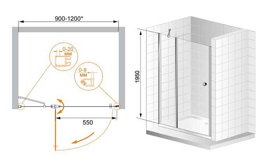 Cezares Душевая дверь в нишу ELENA-W-B-12-90-P-Cr-R