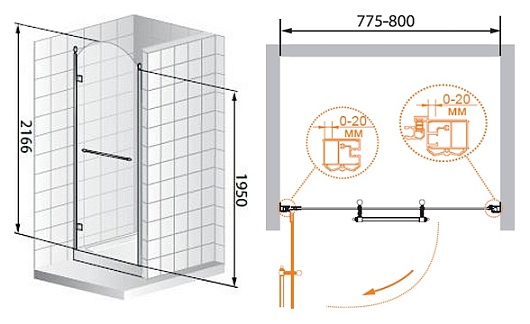 - возможна регулировка ширины (875-900)x2166 мм
