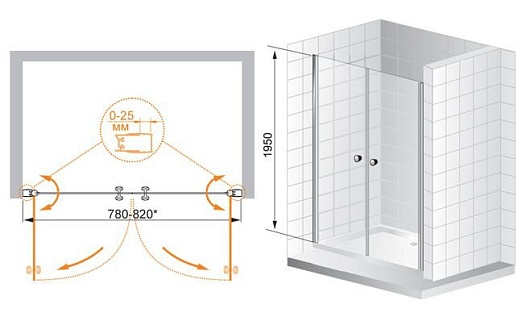Cezares Душевая дверь в нишу TRIUMPH-D-B-2-80-C-Cr