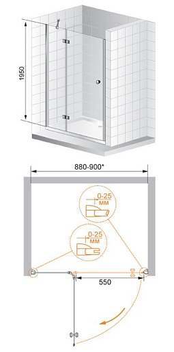 Cezares Душевая дверь в нишу VERONA-W-B-12-90-P-Cr-L
