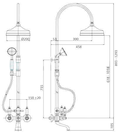 Душевая колонна со смесителем для верхнего и ручного душа: