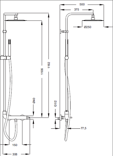 Душевая колонна с термостатическим смесителем для верхнего и ручного душа: