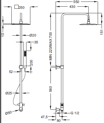 Душевая колонна со смесителем для верхнего и ручного душа: