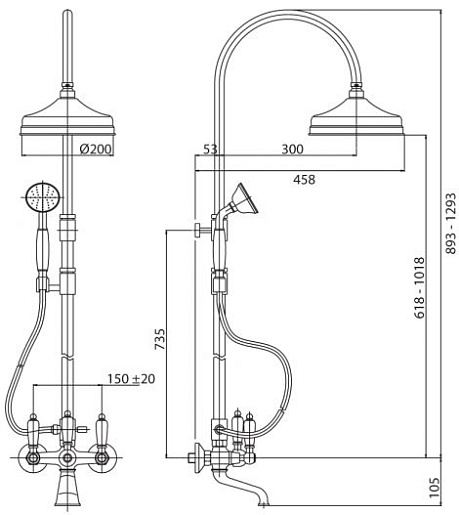 Душевая колонна со смесителем для верхнего и ручного душа: