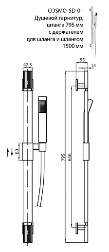 - Душевая стойка 795 мм - 1 шт.