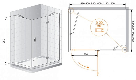 - Регулируемые габариты: (980-1000)x(880-900)x1950 мм.