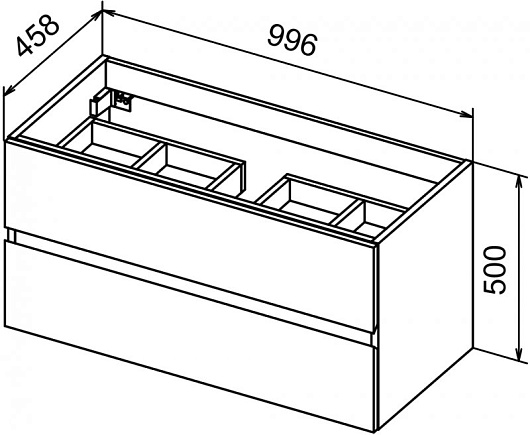 - База под раковину подвесная с двумя выкатными ящиками, 100х46х50 см., MOLVENO 46-100-2C-SO-NN.