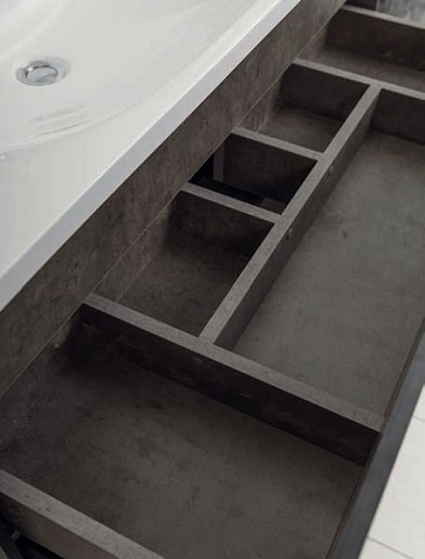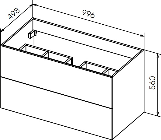 - База под раковину подвесная с двумя выкатными ящиками, база оснащена механизмами PUSH (BLUM) и функцией плавного закрывания, с фасадами, закрывающими боковины, размер: 1000x500x560 мм., PREMIER-HPL-100-2C-SO-LAVA-BLUM-EST.