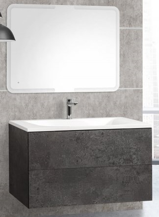 - База под раковину подвесная с двумя выкатными ящиками, база оснащена механизмами PUSH (BLUM) и функцией плавного закрывания, с фасадами, закрывающими боковины, размер: 1000x500x560 мм., PREMIER-HPL-100-2C-SO-MGN-BLUM-EST.