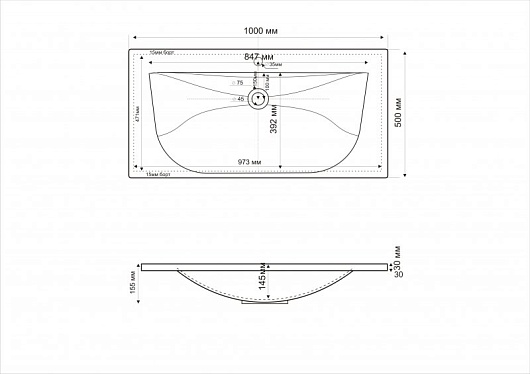 - Раковина из литьевого мрамора, 1000x500x150 мм, CEZ1000/500-LV-MR.