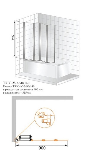 Cezares Шторка на ванну TRIO-W-V-3-90/140-P-Cr-R