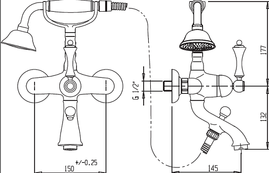 Cezares Смеситель ATLANTIS-NOSTALGIA-VD-03/24 для ванны с душем