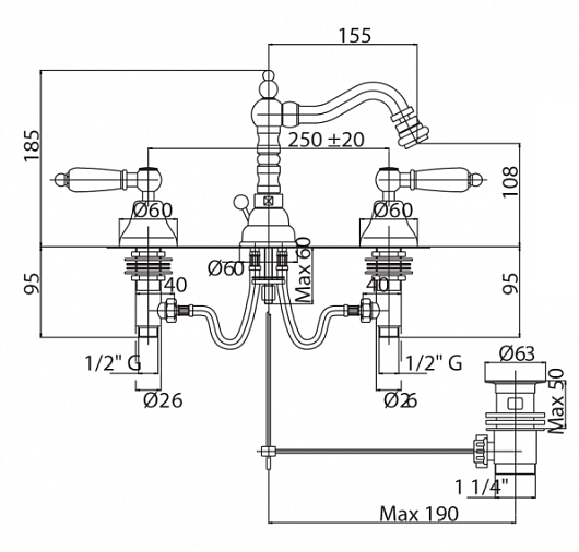 Cezares Смеситель DIAMOND-BBS2-01-Sw-N для биде