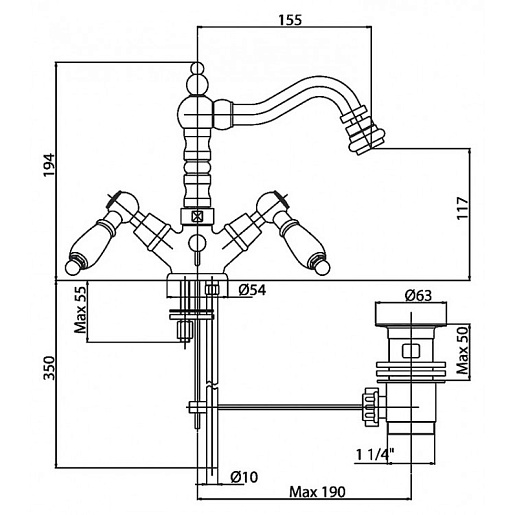 Высота излива, мм: